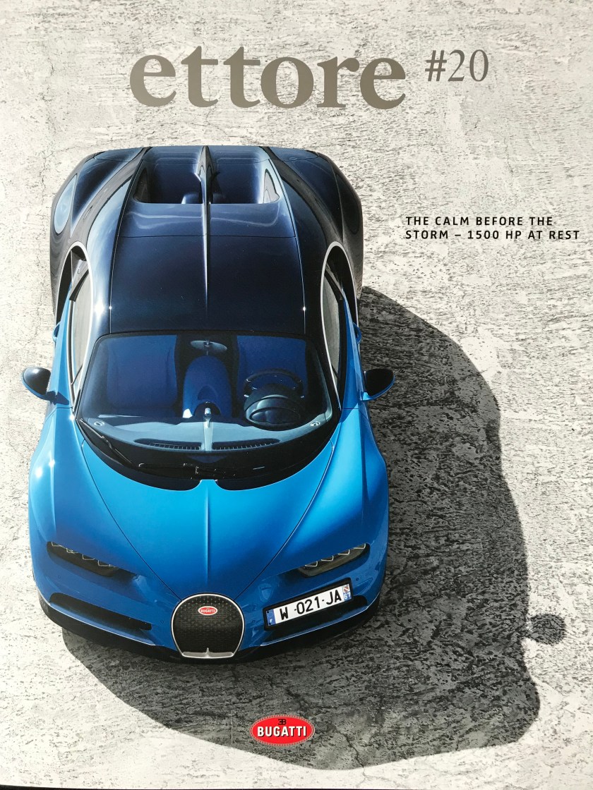 Two articles came out of that trip. If they have a slightly corporate feel about them, that’s because ettore is a corporate publication – and an extremely exclusive one at that – reserved only for those who own a modern-era Bugatti. Bearing in mind that Bugatti only made 450 Veyron from 2007 to 2017, and has limited production of the current Chiron to 500 over seven years, the print run for this magazine is minuscule. To make it worth their while even warming up the machines in the first place, the designers at Delius Klasing Corporate Publishing gave it a supersized format (30 x 36 cm), selected a weighty print stock, stuffed it full of sumptuous photography and coated it all in a silky matt varnish – none of which comes over in digital … ah, well.