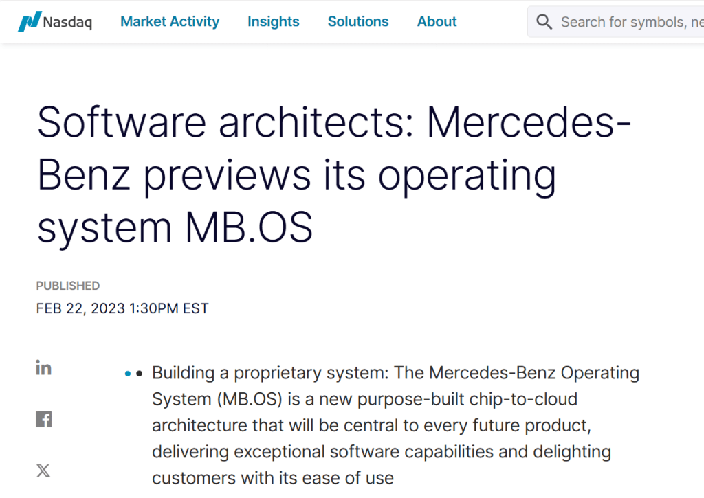 Speechwriting for board members of global companies like Mercedes-Benz often involves strategic subject matter of direct interest to capital markets. The unveiling of the Mercedes-Benz Operating System (MB.OS) was a crucial event held in the heart of Silicon Valley for key investor relations audiences. I coordinated and wrote the 50-minute keynote address by Mercedes-Benz Chief Technology Officer Markus Schäfer and Chief Software Officer Magnus Östberg. This was a substantial project that took months of preparation and development in collaboration with key stakeholders. The feedback from attendees on-site was phenomenal, with high praise for the level of useful insight into a highly complex and strategic topic.
