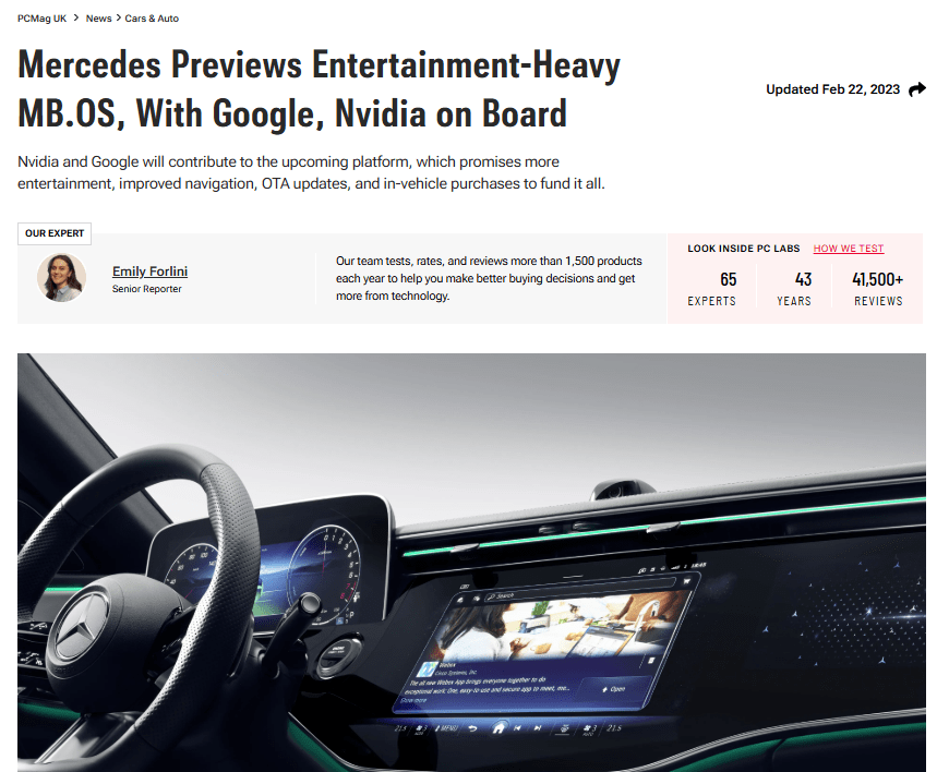 One of my core skills is conveying complex technology topics to a variety of audiences. During the ongoing transformation of the automotive sector, this includes innovation in electric drive, digitalisation and the development of the software-defined vehicle. As Mercedes-Benz prepared to rollout its first “electric-first” vehicle platform, I was tasked with writing a detailed press kit for its flagship technology programme the VISION EQXX. The brief was a departure from the usual Mercedes-Benz tone of voice to embrace a more engaging, storytelling approach. I had full responsibility for liaising and coordinating with key client stakeholders, including senior communications executives and technical specialists in multiple departments.