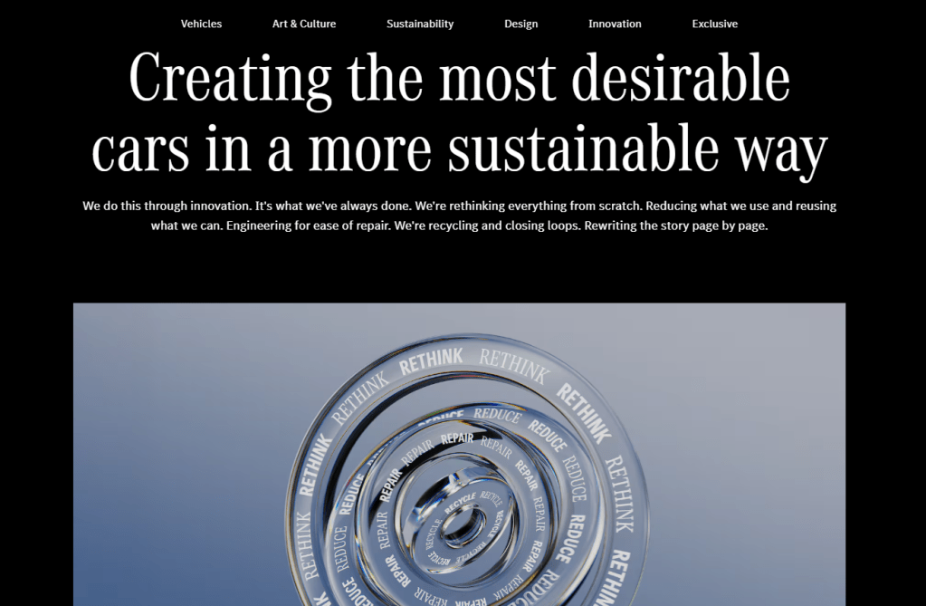 As lead consultant editor for Technology and Sustainability topics on behalf of Mercedes-Benz AG, I was responsible for developing the storyline, structure and editorial content for key sections of the company’s online presence. This involved intensive coordination with web designers, SEO specialists, technical experts, communications stakeholders, visual content producers and legal advisers. One recent example is the Sustainability sub-section of the company’s brand website.